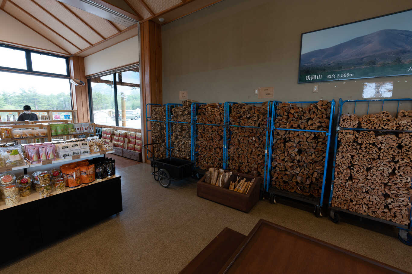 軽井沢の観光地や温泉、キャンプ場の先にも鬼押出し園があるようで、キャンプ以外でも楽しめる環境にあると思います。買い出しも軽井沢の街中で出来ますし、現地でも薪やガス缶等、最低限の必要な物は販売してました。