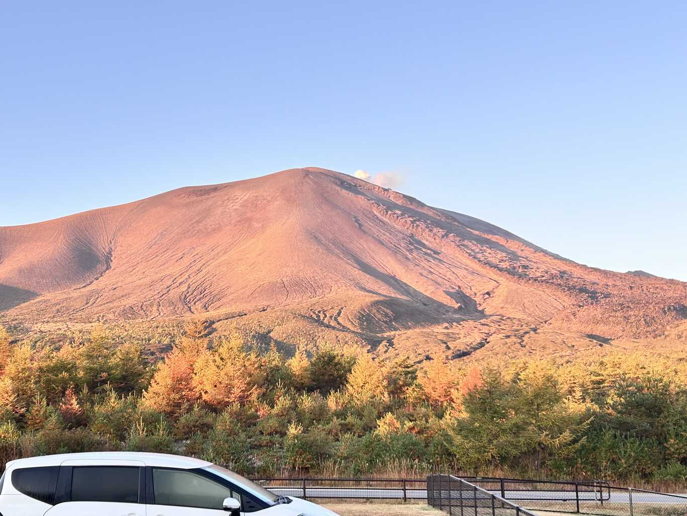 目の前の浅間山が迫力あり、紅葉シーズンで彩りが綺麗な自然が広がってました。 標高が高く空気も住んで、時々鹿の鳴き声も聞こえてきます。