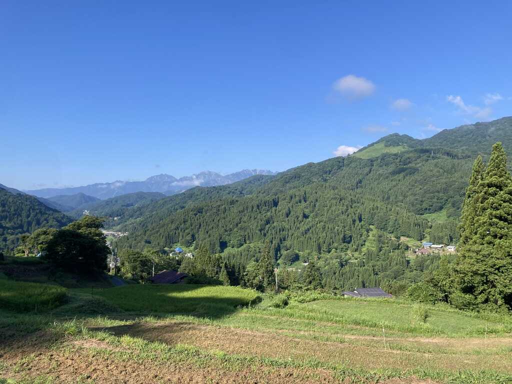 抜群でした。上空には北アルプスが見え、正面には山あいに囲まれた集落、またテント場は広々とした棚田。自然にいだかれたキャンプ場で田舎好きにはたまらない魅力です。