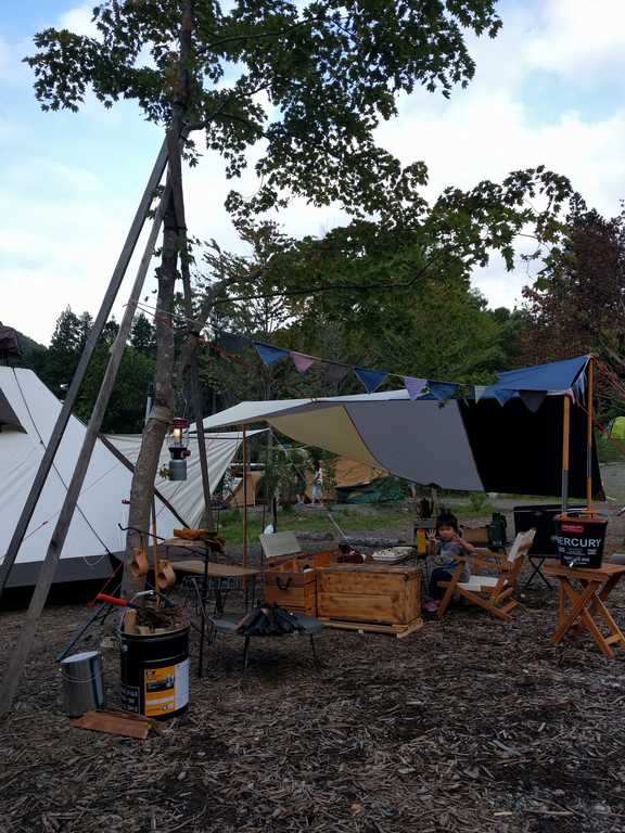 二日目の夜は雨が降り大変でしたが地面がウッドチップって事もあり水はけ良くて良かった。