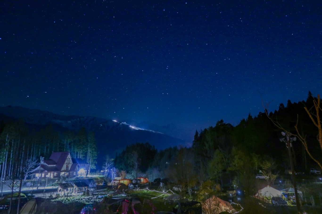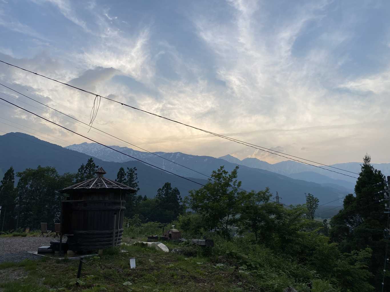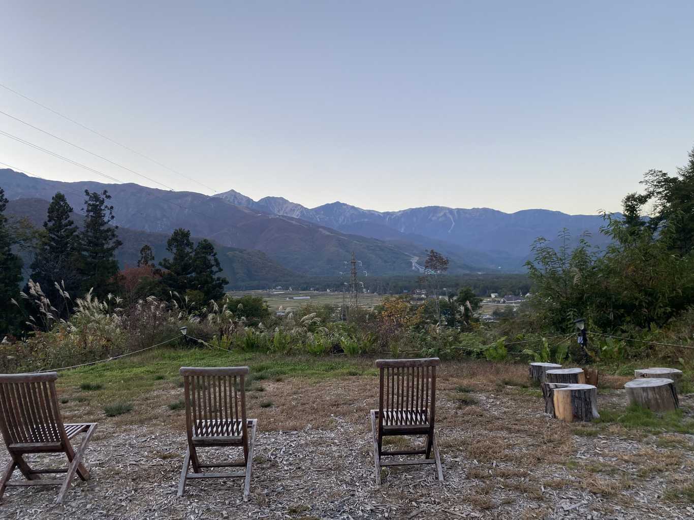 当日は天候不良でしたが、白馬の山々が見え、高原の自然豊かな素晴らしい環境でした。 頭上に電線が通っているところがあり、山々や星空の景観を邪魔しており残念でした。