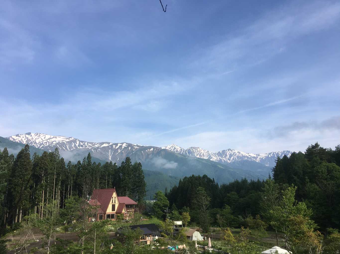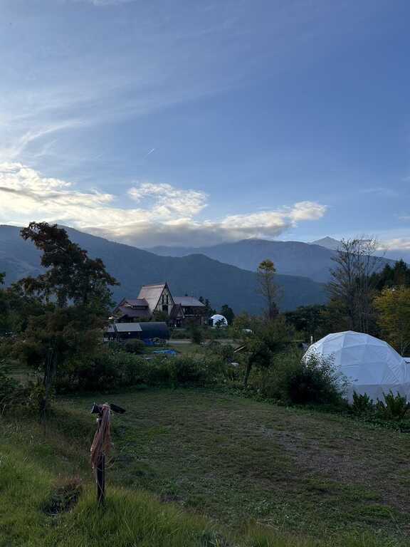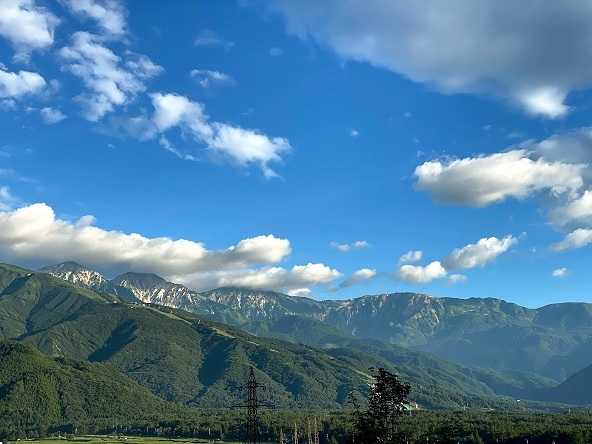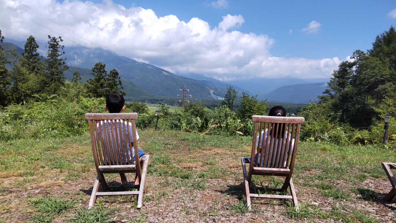 当日は天候不良でしたが、白馬の山々が見え、高原の自然豊かな素晴らしい環境でした。 頭上に電線が通っているところがあり、山々や星空の景観を邪魔しており残念でした。