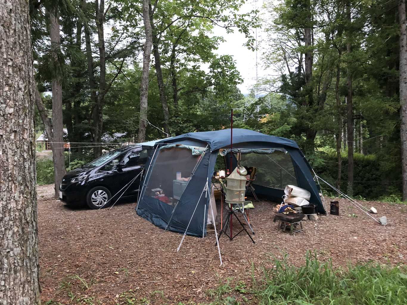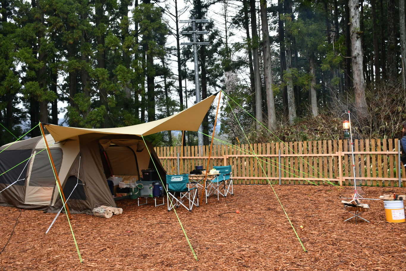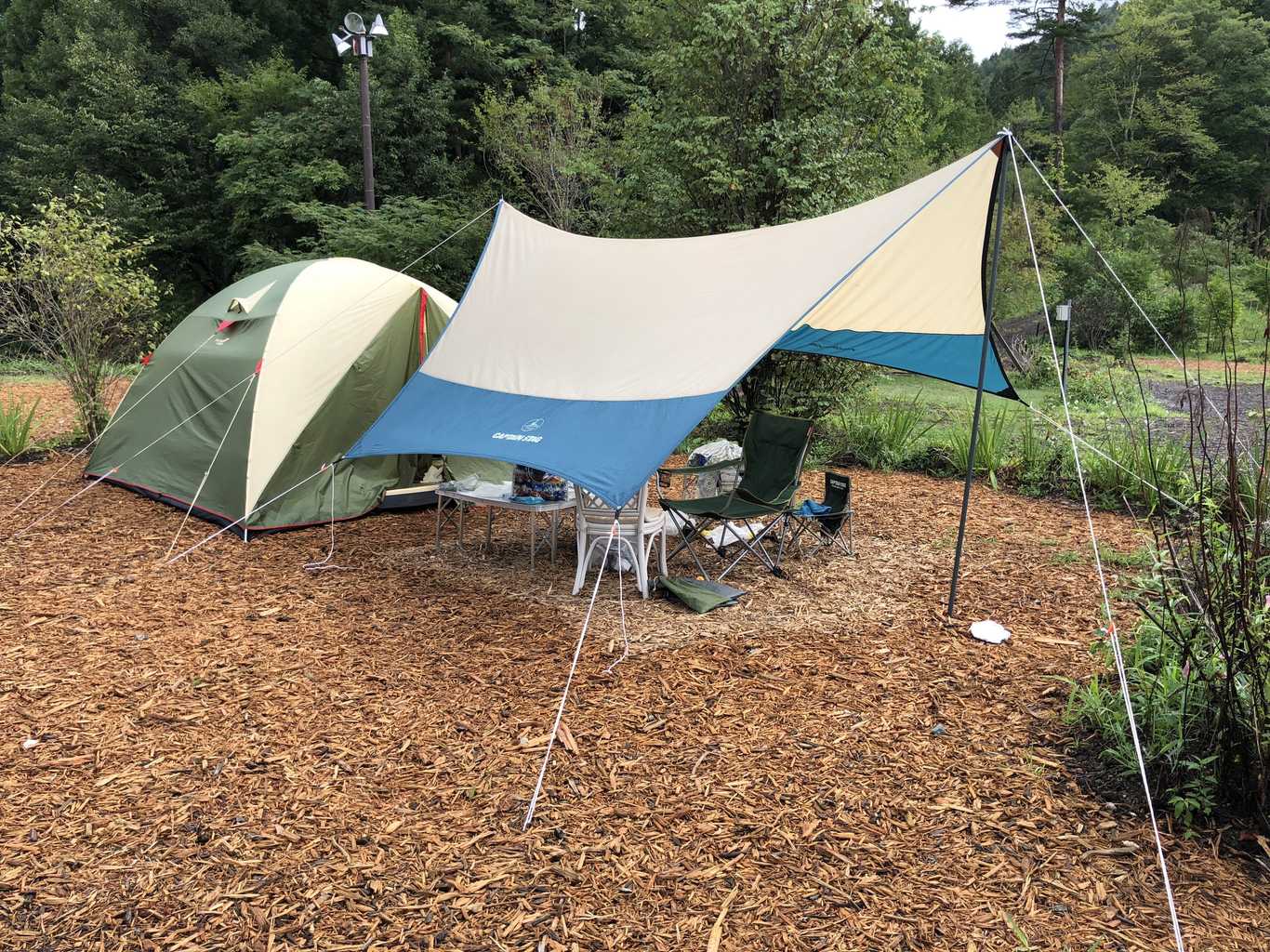 100区画という結構広い場所でオートサイトを利用 地面にはウッドチップを使用していて水捌けいい感じ