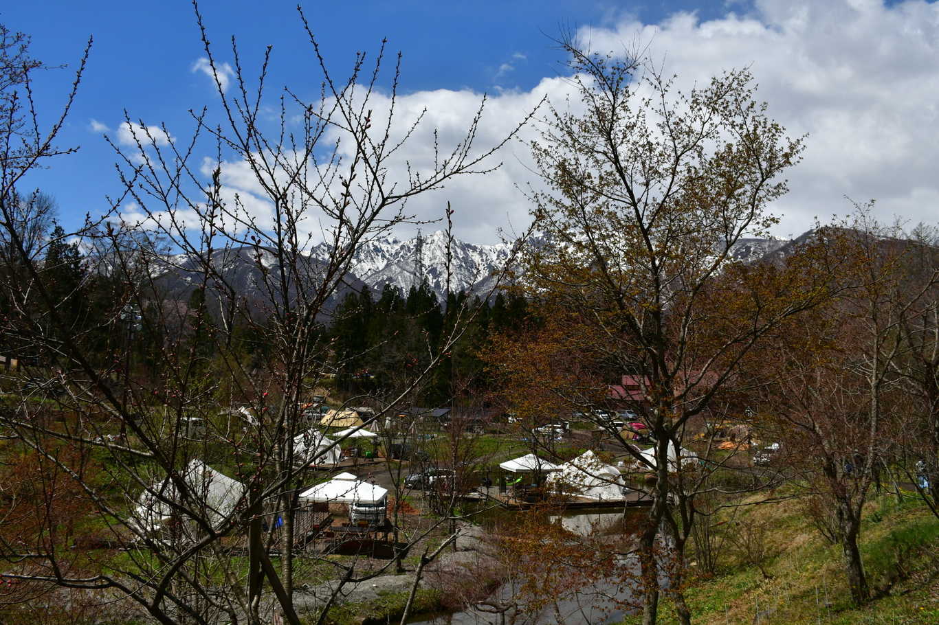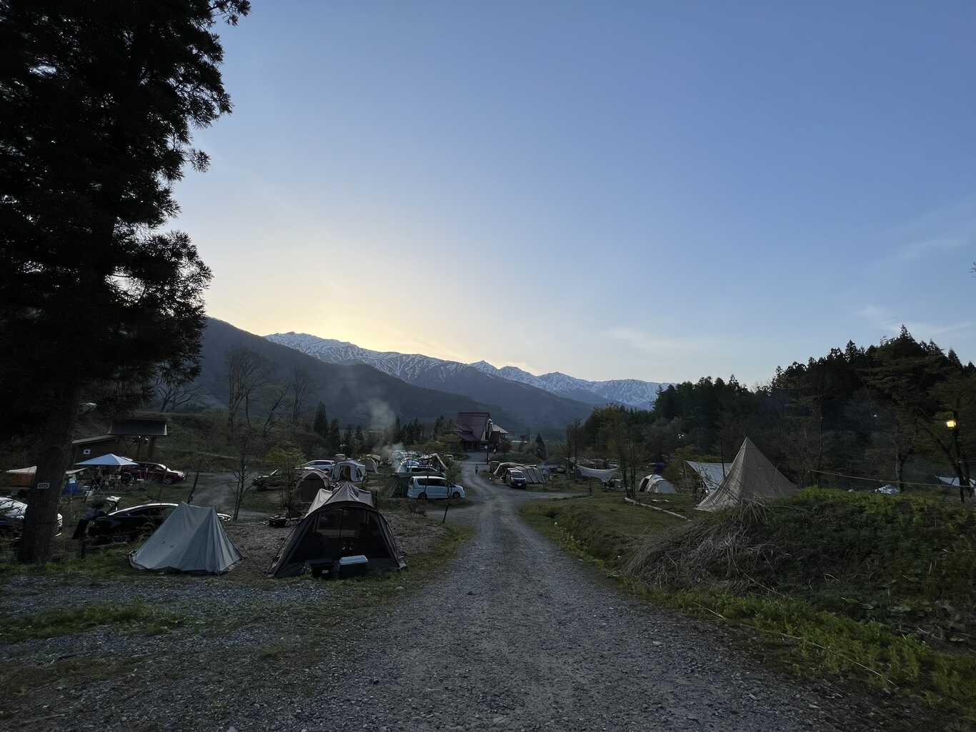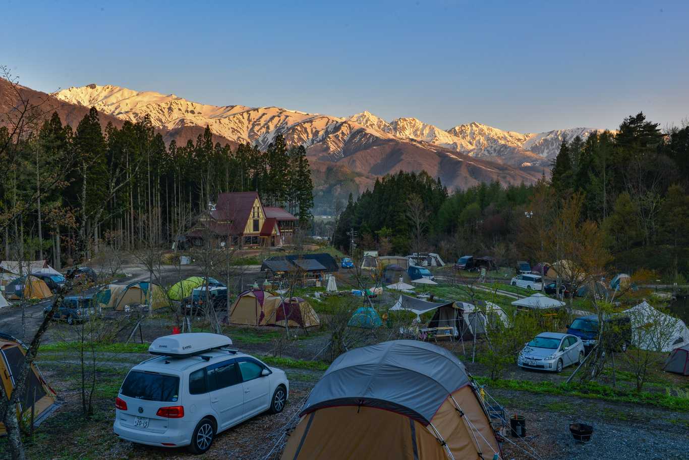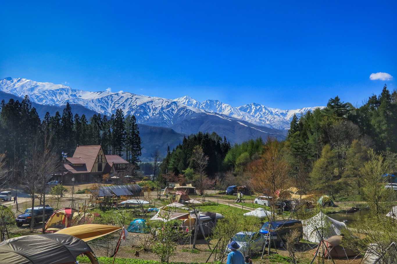 GW初日の利用でしたが、混雑はしておらず適度に賑わいがありました。若いグループもいましたが、家族づれがほとんどです。 サイトからは北アルプスが望めて、まだ雪の残る山の風景は眺めているだけで癒されます。 ただし、お湯が出ないのと、他の方も書いているようにサイトにはさくらチップ?が敷き詰められていますが、下に石があるのか、ペグがささらない場所もあり設営に少々時間がかかりました。新しいキャンプ場らしく、工事や作業も行なっていたのでこれからに期待です。