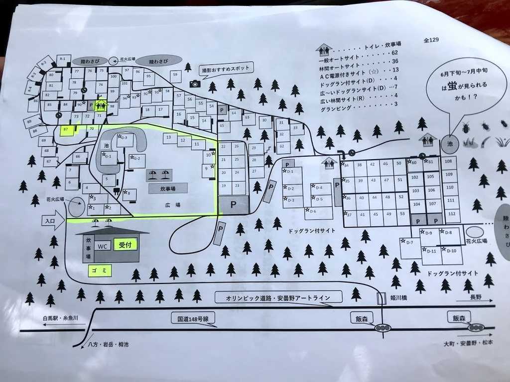 主要道路から離れていないので、ナビやスマホの案内と看板で、迷うことなく到着できました。 白馬駅方面に行くと食事や温泉も充実していて、観光も楽しめました。 温泉の割引券や、近くの病院などの情報も受付時にいただけたので、子連れでも安心して楽しむことができました。 車で5分くらいの所にスーパーも、ホームセンターもあり、忘れ物があっても安心のキャンプ場でした。
