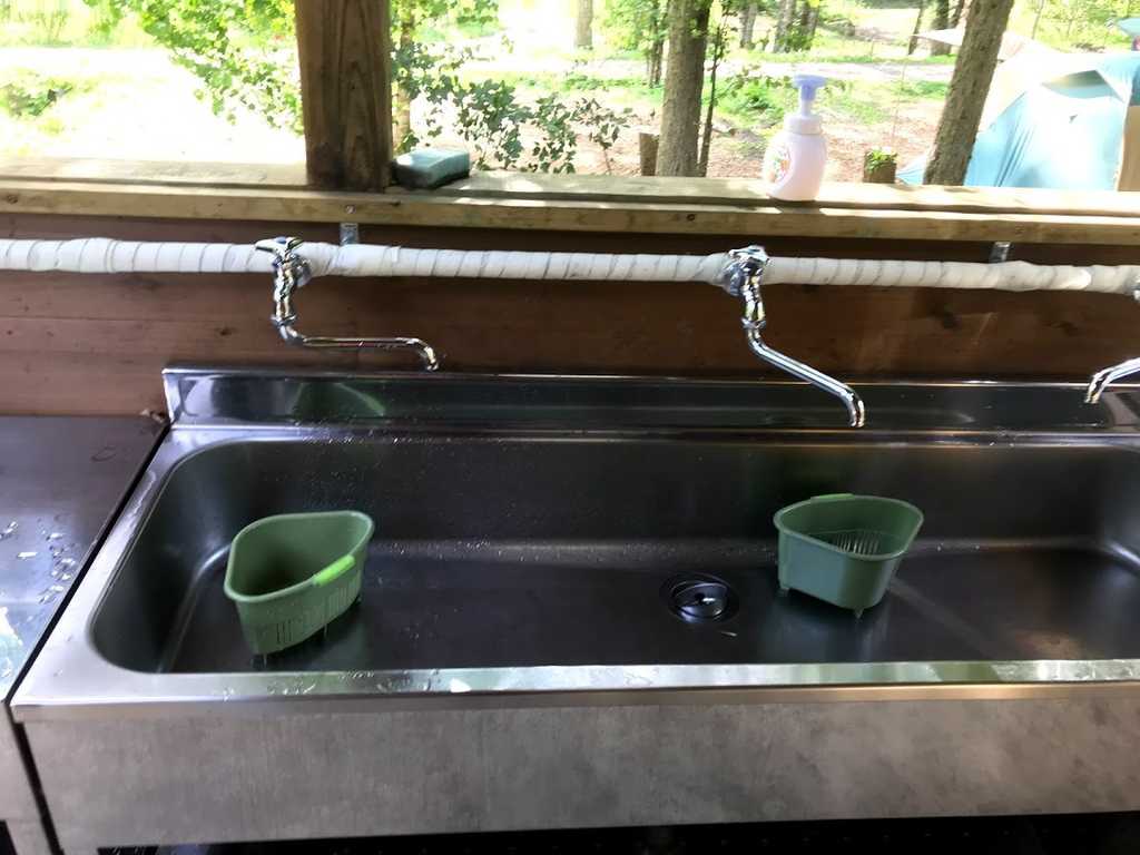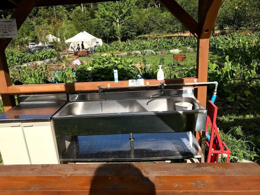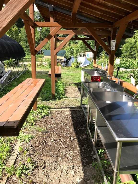 炊事場も遠くなく、設備としては、お水だけでシンプルですが、いつもスタッフの方がこまめにシンクやその周りも片付けてくれているのか、清潔な印象を受けました。 お風呂なども無いですが、車で5分もかからない所に日帰りで温泉が数カ所あり、割引き券もあるので、温泉に入り比べるのを楽しみました。