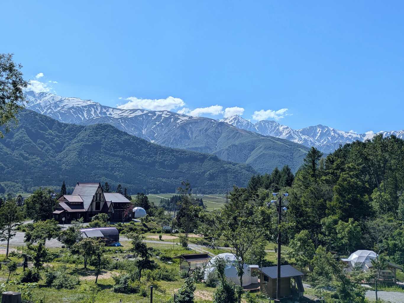 森林を伐採して造成したので、白馬の山脈を楽しみたいかたは、サイトを吟味する必要があります。