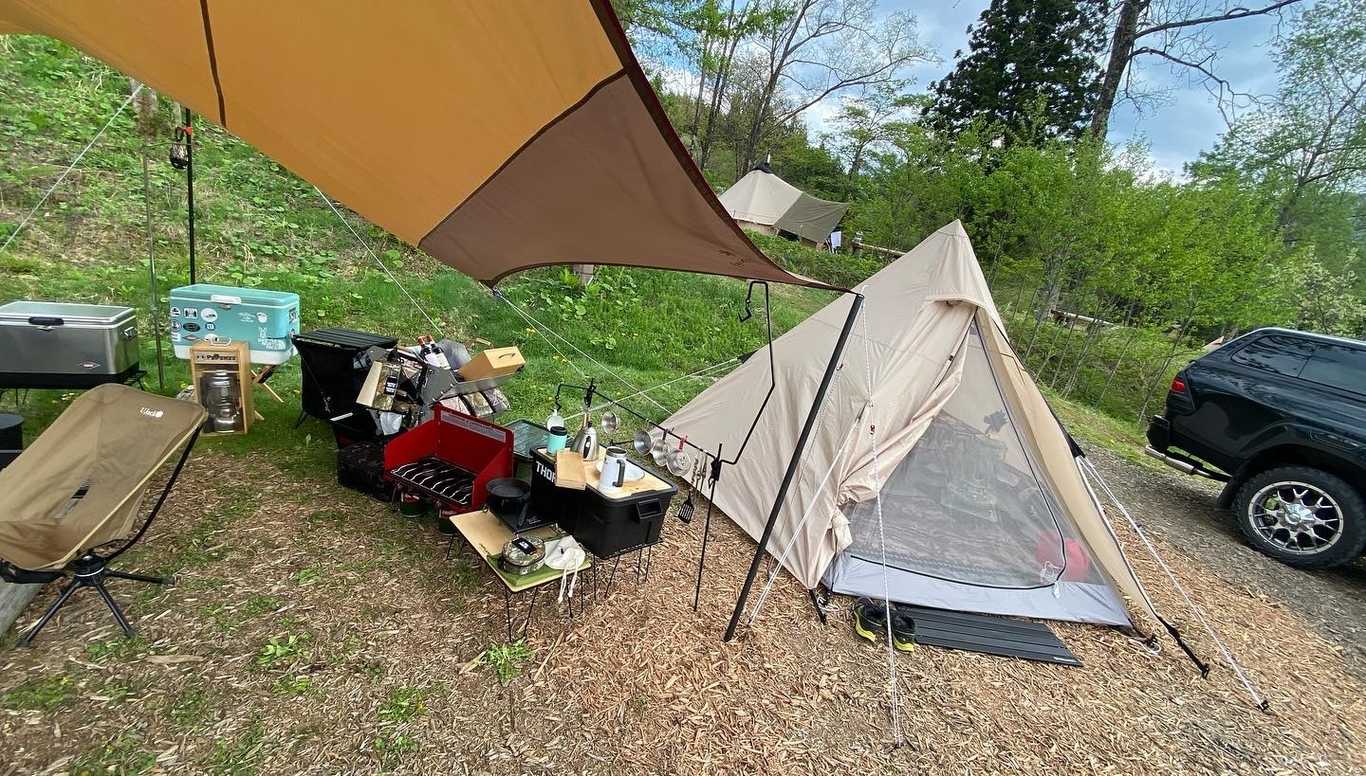 林間サイトは気で囲まれていますが、今回のサイトは木はありませんでした。暑い時期は日陰がなく大変かもしれません。ただ、木がないおかけで、夜は満天の星空を堪能できました! 近くに水がながれており、野生のうさぎさんを見ることもできました。