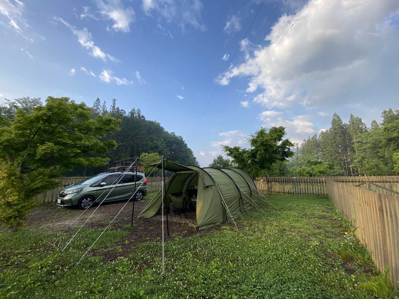 昨年は管理棟の前のサイトでしたが、今回は新たに造成した部分の一番奥で、景色もそれほど見えないため、普通の林間サイトという感じでした。造成工事もまだ完了していないという雰囲気で工事中の現場の横でキャンプしているという雰囲気でした。ただ、その分静かに過ごせたと思います。