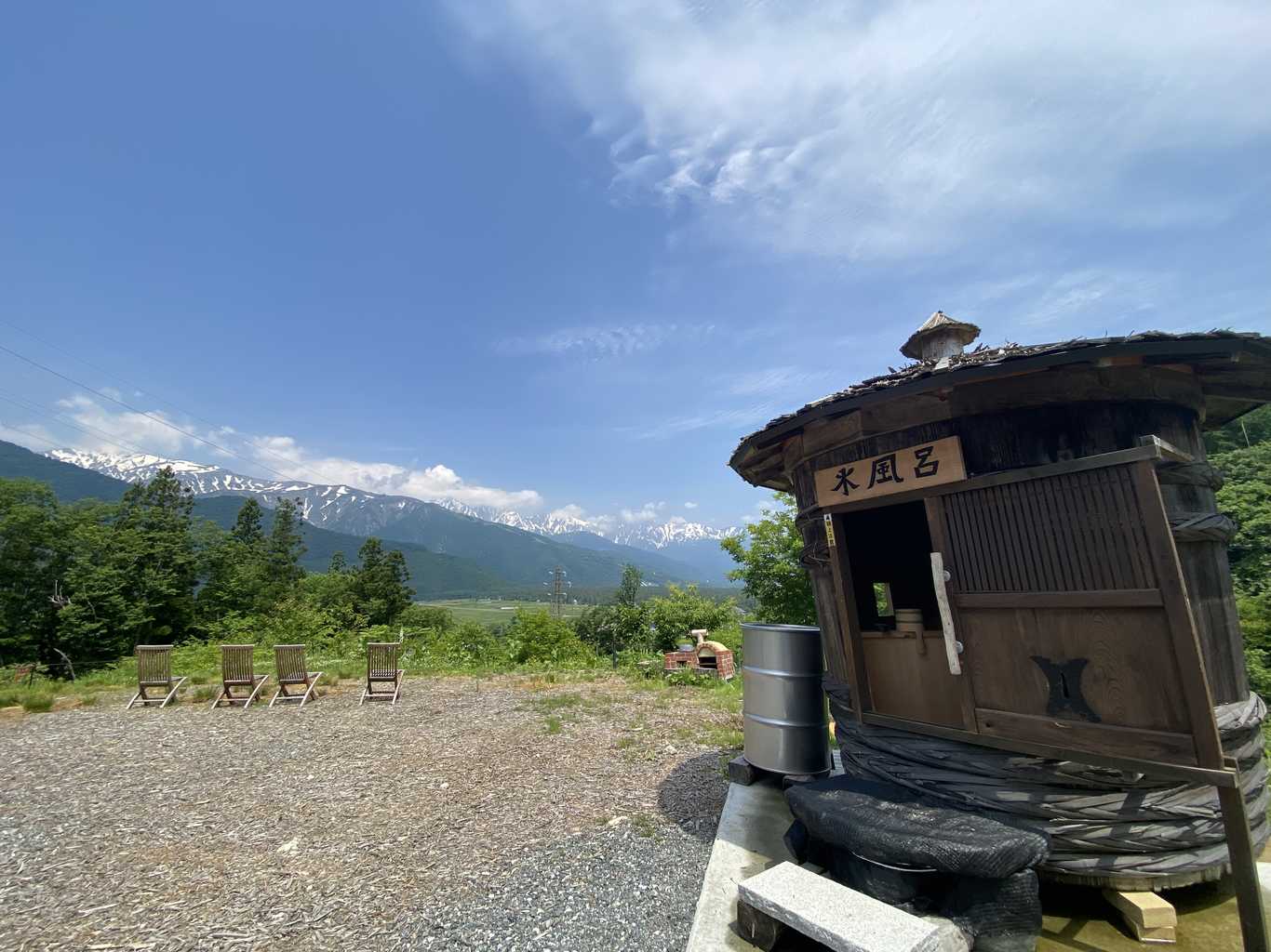 雄大な北アルプスを眺めながら五感で自然を感じられる「グランピング₊サウナ 白馬森のわさび農園」。