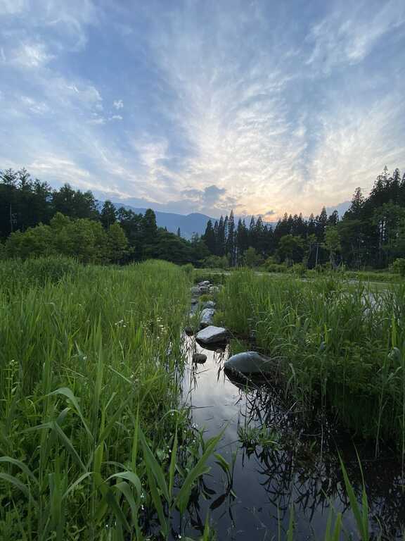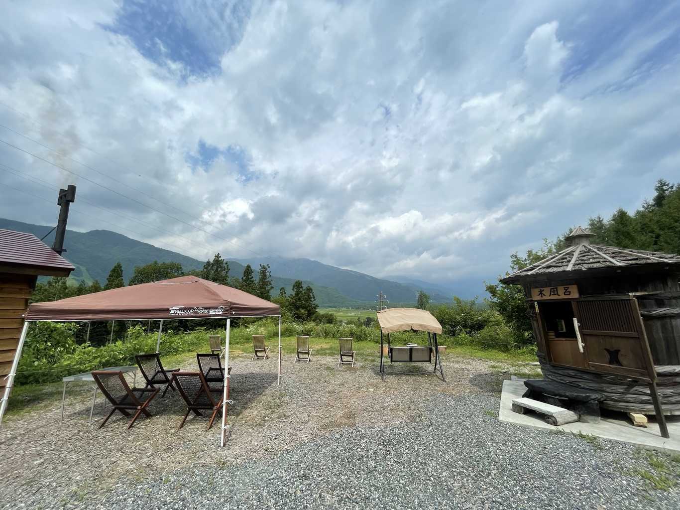 サイト周りは珍しい野鳥、夜には満点の星空があり素晴らしい自然環境です。わさび農園らしく小川のせせらぎも気持ちよく木々の間から見せる白馬三山が本当に綺麗です。