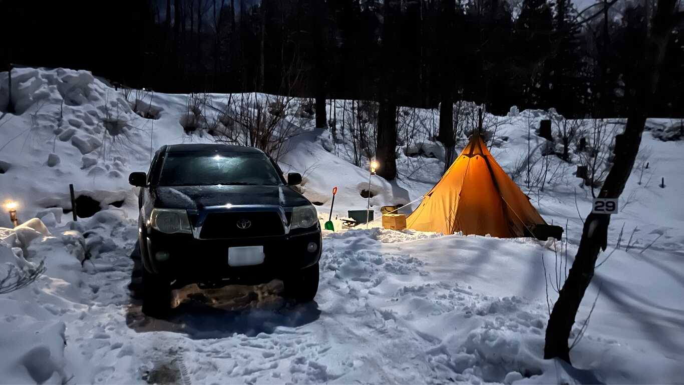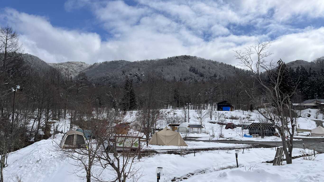 グランピングテントはこの度、雪の中でもお過ごしいただけるドームテントにリニューアル。