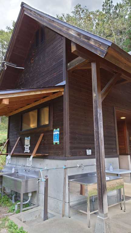 トイレはウォシュレット付き(便座暖かかった) 炊事棟はシンクが広くて良かった。三角コーナーが置いてあるが常にカラスが狙っているので残飯はなるべく残さないほうがいい