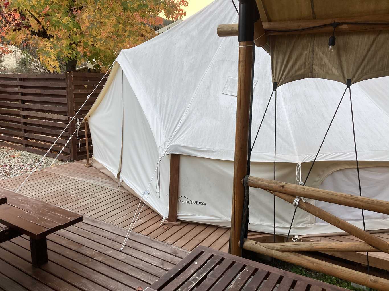 初グランピングの場として予約しました。 可愛らしいテントでお皿、コップはもちろん コーヒー、紅茶などのアメニティや UNOやトランプといった、遊びも充実しており 早くからチェックインしましたが楽しく過ごせました。 川沿いで、自然も豊かで、夜は星空が綺麗でした 併設のホテルにキッズパークがあり 子供も沢山遊ばせられました。 キャンプ場から歩いていけれる距離なので 温泉で暖まれて冬場のグランピングには もってこいだなと思います。