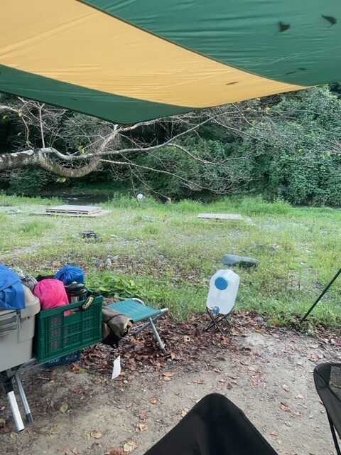 テントサイトの目の前に川が流れていました。水は見た感じきれいでしたが、生き物はほとんどいませんでした。川と少し木が繁っている程度で、私は十分でしたが、人によっては物足りないと感じる方もいるかもしれないと思い、3(普通)という評価にさせて頂きました。 夜は真っ暗になったので晴れていれば星空もきれいだと思います。 フリーテントサイトでの宿泊でしたが、4つのテントサイトはすべて埋まっており、みなさんタープとテントを使用していました。