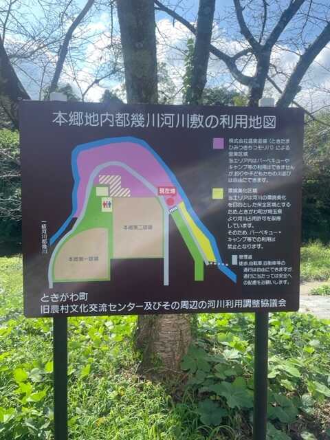 梅雨入り直後に利用したため、夜中から雨が…。 都幾川が目の前なので、川遊びも楽しめましたし、この時期ならではの蛍も見ることができました。(散歩中の近所の方に伺ったら、昨年の台風の影響で今年はぐっと少ないそうです。) フリーサイトCを利用しましたが、桜の木の下で、お花見の時期にキャンプをしたい、そんなサイトでした。 ただ施設の駐車場と道路が目の前なので、クローズするまで車の出入りがあったり、近所の方が散歩に来たりと、ちょっと落ち着かない面もありました。