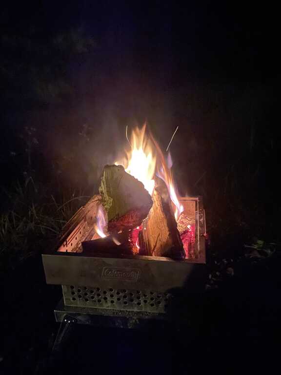 グランピングサイトは河原にあり、夏場であれば水遊びが楽しめそうです。河原で焚火遊びしましたが、川の音と木が爆ぜる音に癒されました。住宅街のそばの割りには明かりもあまり漏れてこず、夜は星空を楽しめます。