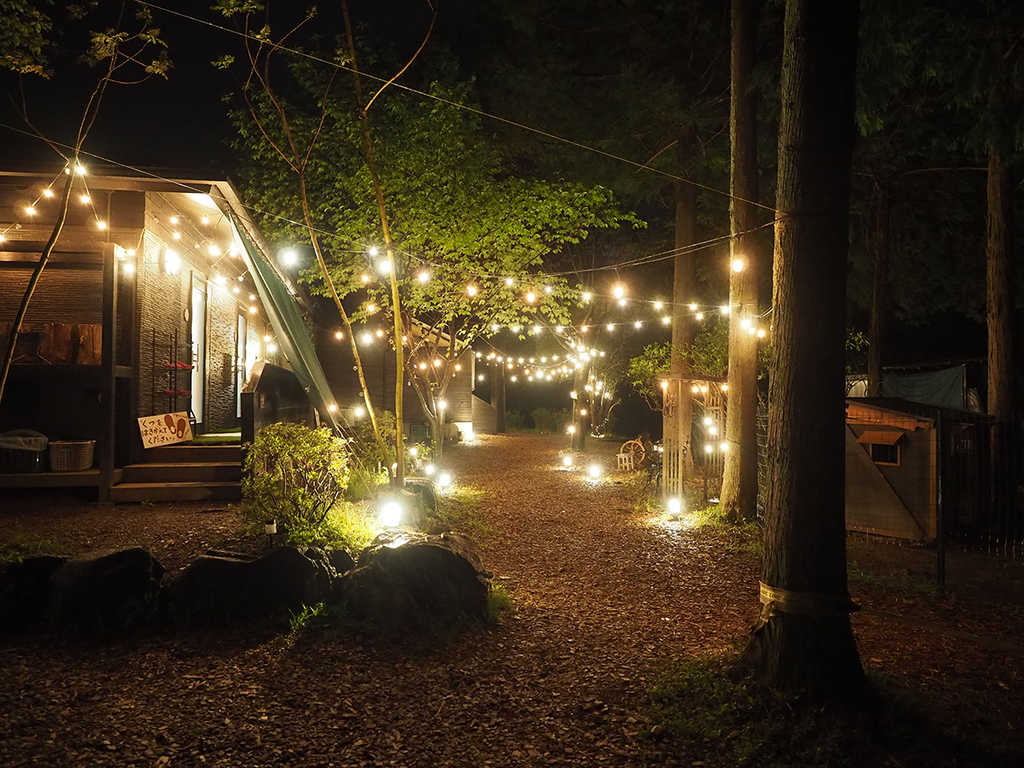 テントの内装はラグジュアリーで大変素晴らしいものでした。 しかし、外のダイニングのセンサーライト?が切れていてランタンの灯りも弱く大変暗かったです。電池をもらいに行ったらすでに受付が閉まっていました。 夜は対応できないという説明も頂けなかったので残念です。 スマホで手元を照らしながらの調理と食事は、キャンプ感はあれどグランピングならではのラグジュアリー感はなかったです。 テント内の扇風機の電池も切れていて、同じく受付が閉まっていたので、暑がりの自分には少しキツかったです。 テント内にランタンはたくさんあるのですが、どれも弱く、写真で見るような明るさがなく、寂しい感じがしました。 まぁ、でも結局はキャンプなんで不便さもそれはそれで別にいいんですけどね…。 唯一夜でも入れるトイレが洗面所としての役割なのですが、せっかく綺麗な建物があるのだから夜でも使える綺麗な洗面所があればいいなと思いました。