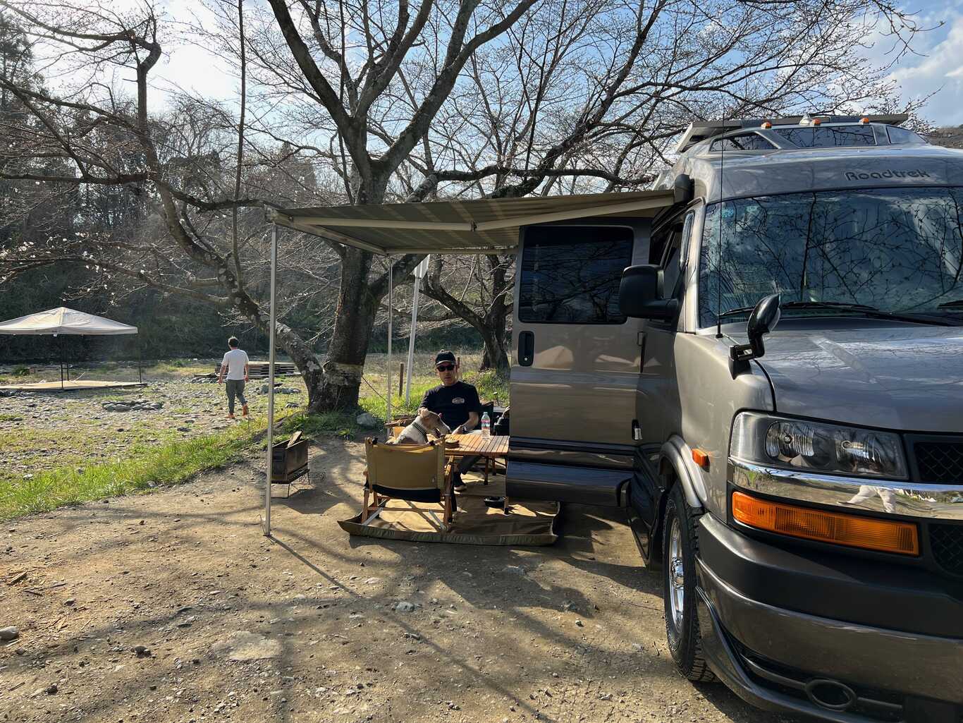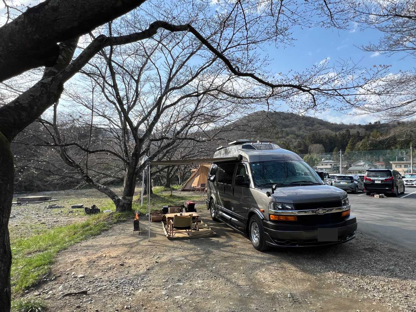 ときがわ沿の桜並木の下のキャンプサイトは絶好の花見キャンプサイトなのですが、残念ながら今回は3分咲きの状態でした。せっかく桜の満開時期に合わせたと思っていたのが残念でしたが、その他は気候もちょうどよく快適に過ごすことが出来ました。