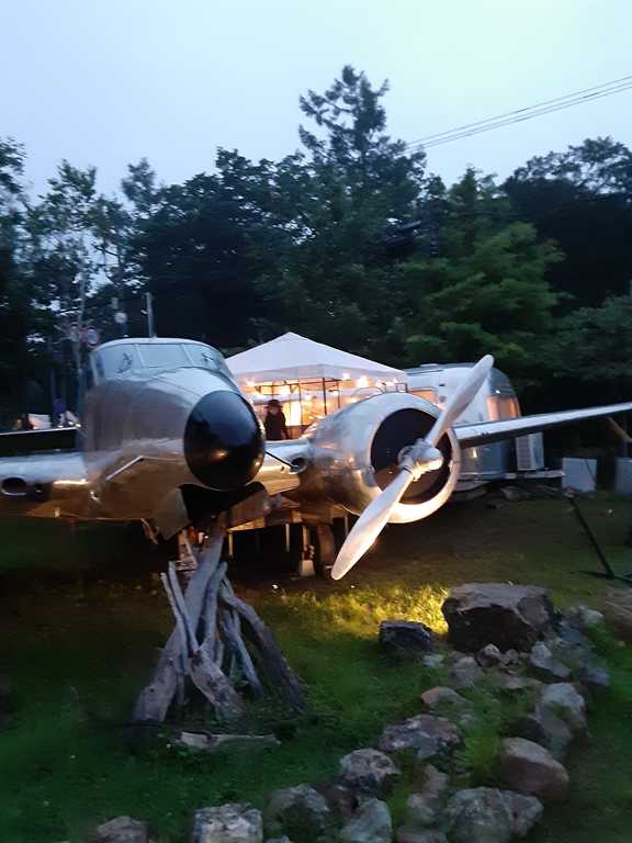 ビンテージトレーラーと飛行機にどうしても泊まってみたかった。滞在中、ワクワク感が止まりませんでした。ふらっとアメリカ、もしくは米軍キャンプに来た感じの雰囲気が漂う場内+旅心をくぐられるビンテージトレーラーの組み合わせは最高のひと言。夜は涼しく、ライティングもきれいなので、ゆったり楽しくお酒がすすみます。