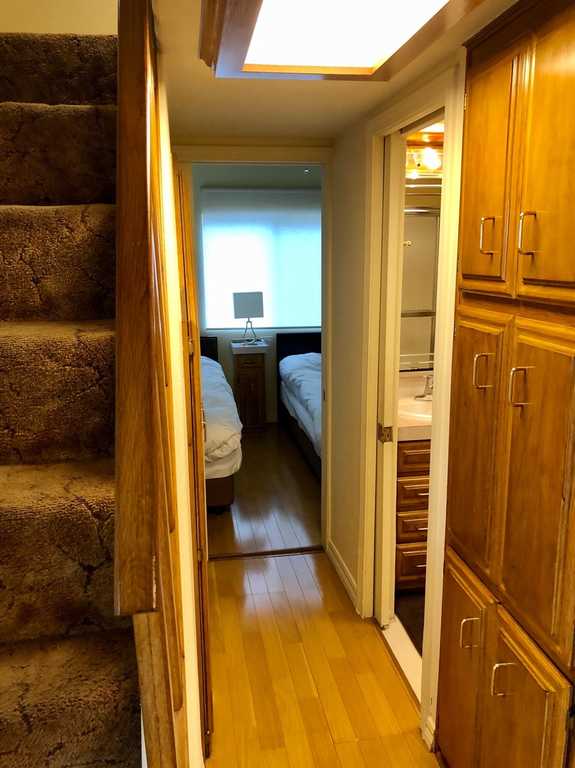 トレーラーハウスですが、冷暖房やトイレ、シャワー、ミニキッチン等付いていてホテルと同じ様に宿泊できました。飛行機内も広くて子供と2人で寝られました。