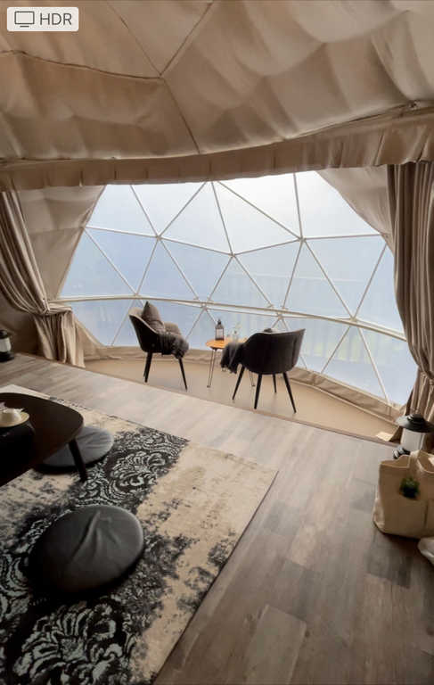 室内はとても綺麗で、トイレ、シャワーも清潔感あり!アメニティまでしっかりあり、近くの温泉の無料券付き。(行ってみたら、タオル付き) 食事もアウトドア感全く無し。景色のいいところで、おしゃれにお泊まりがしたい人向きかな。